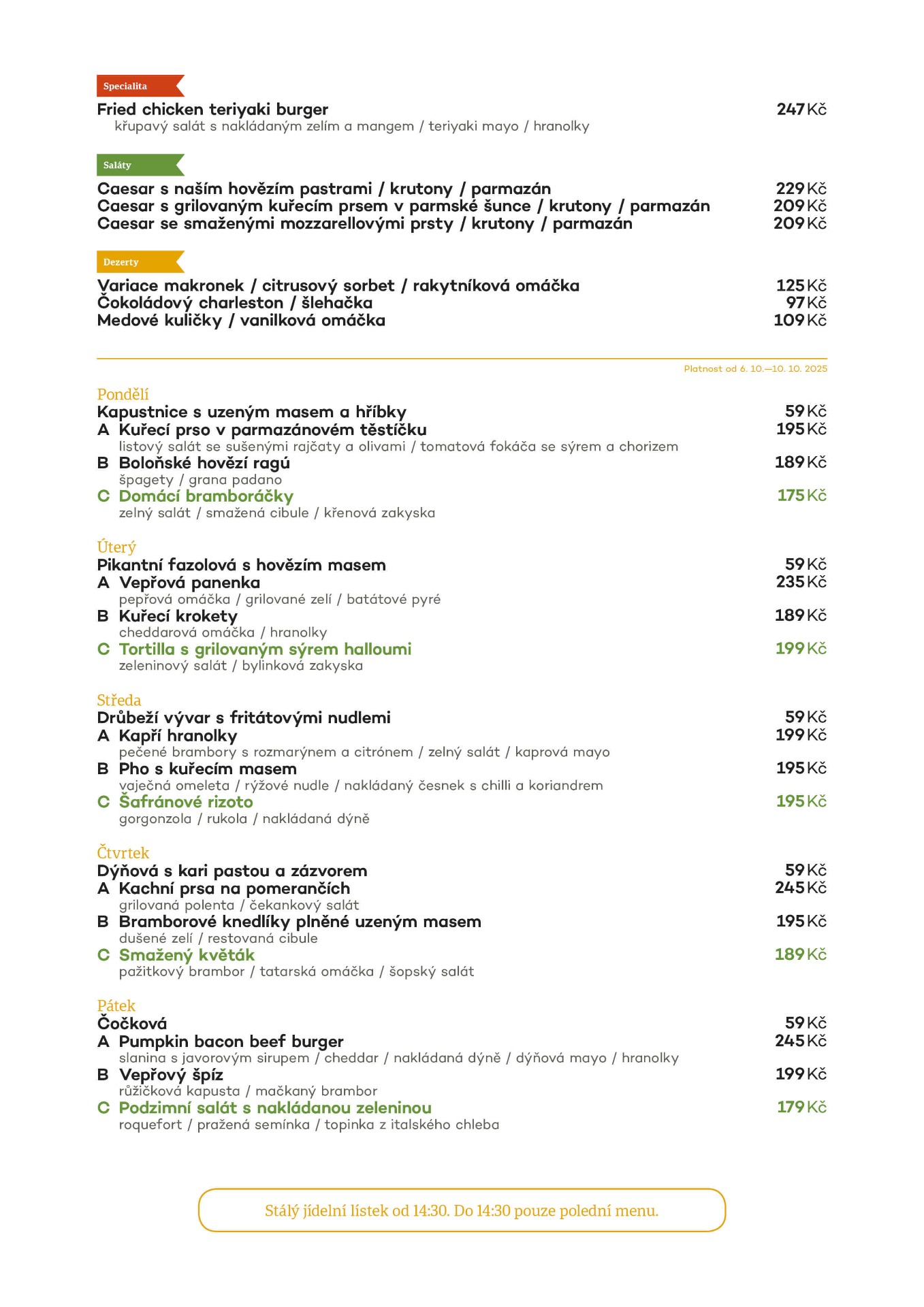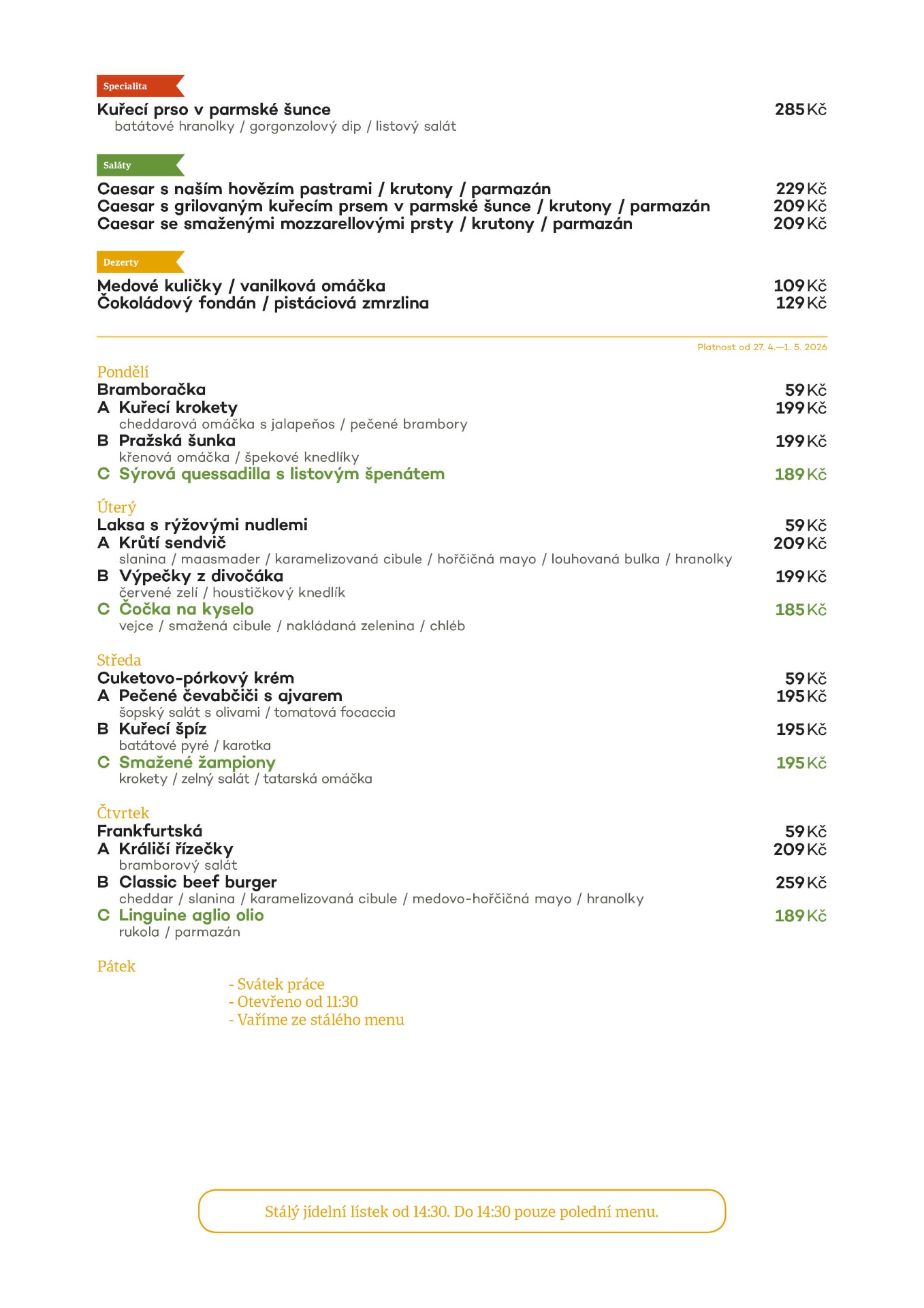 Kuchyně Po-Čt+Ne do 21 hod, Pá+So do 22 h
