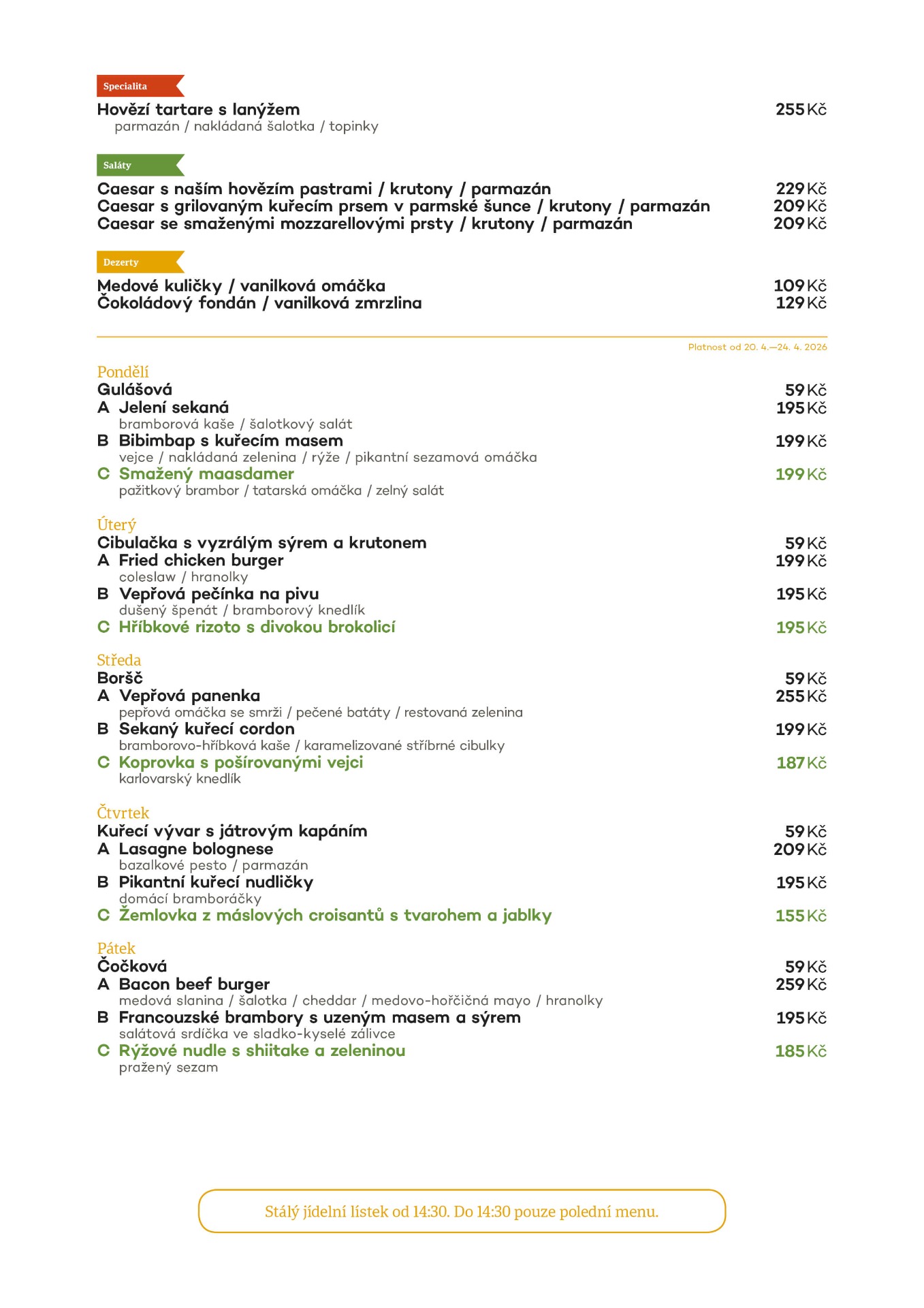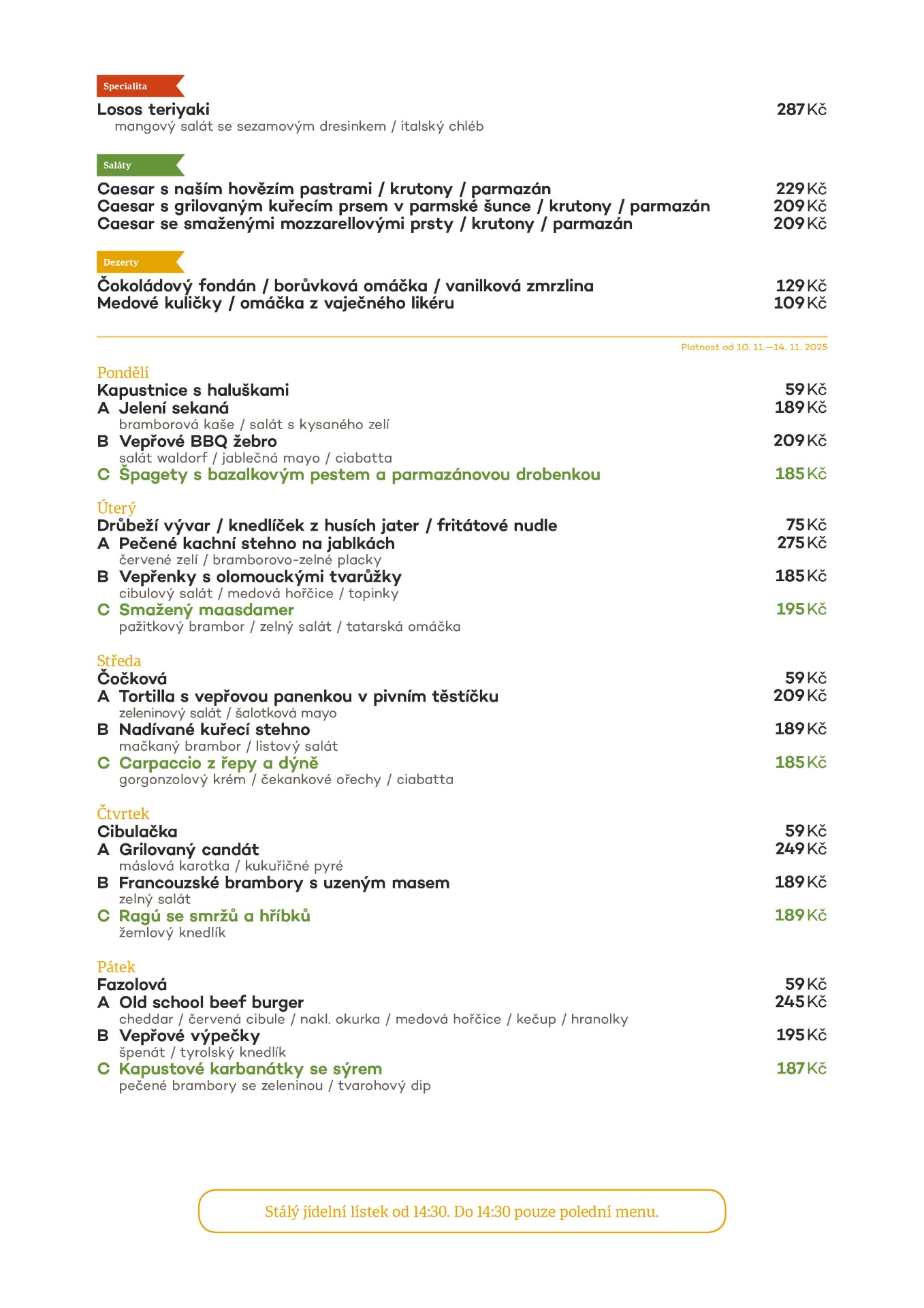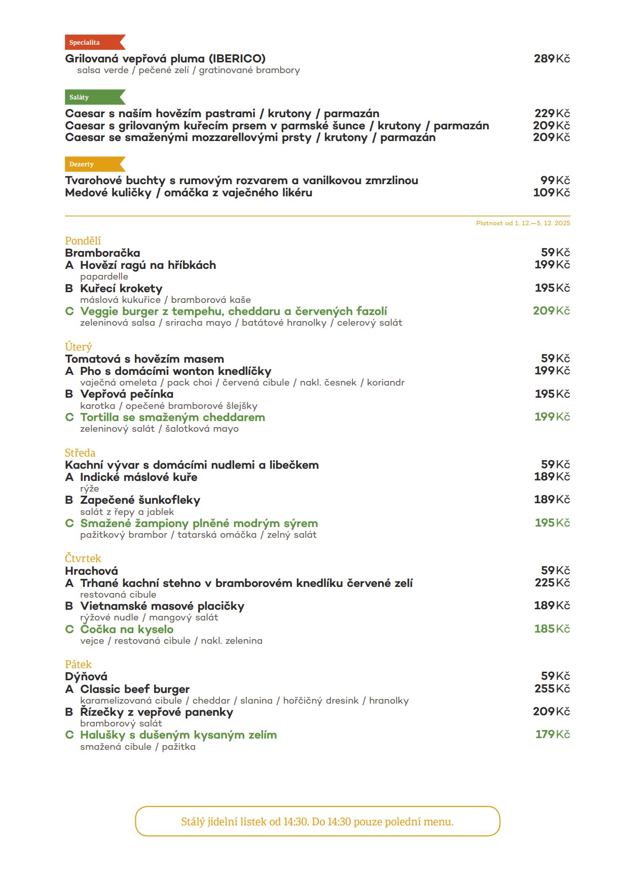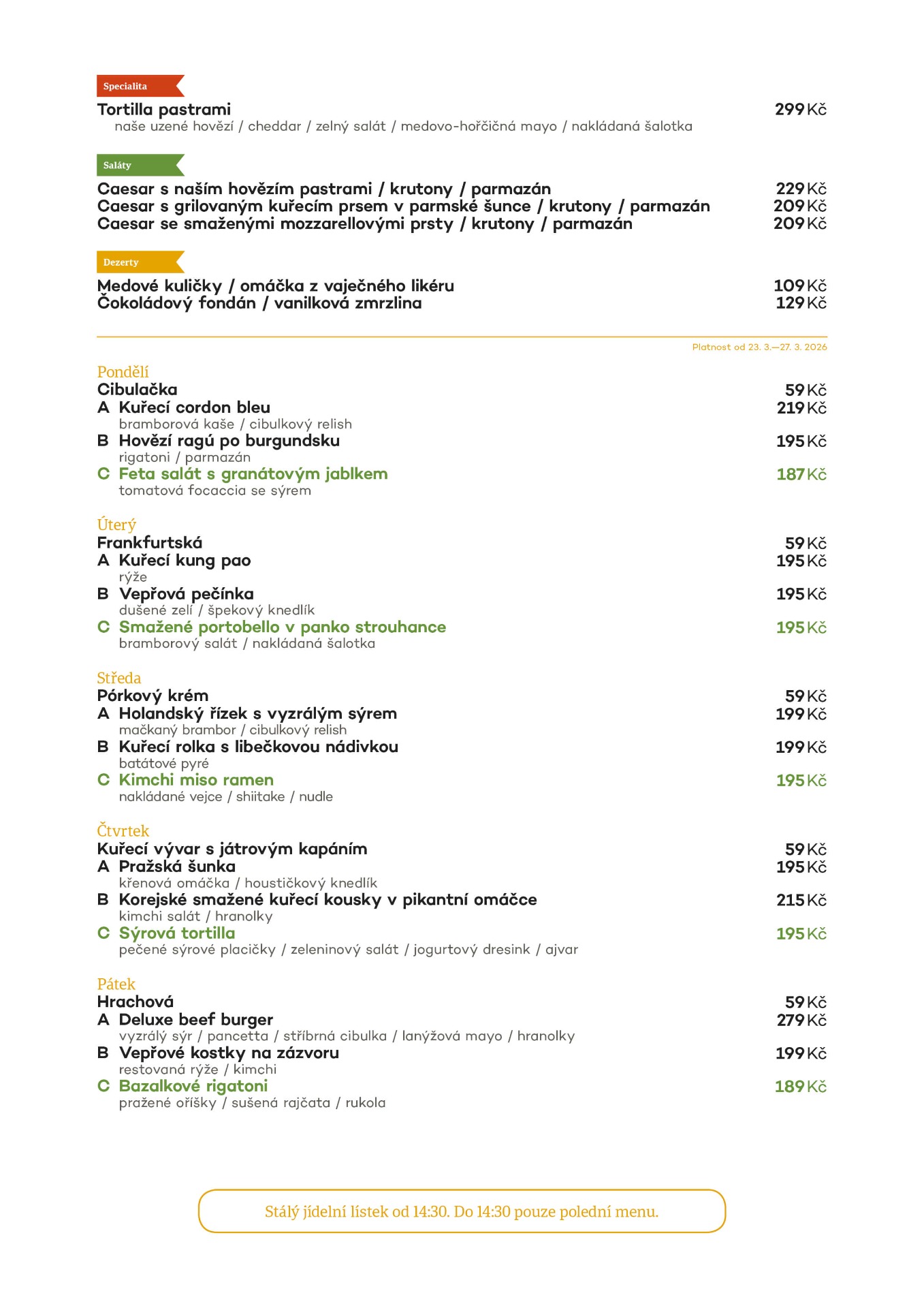 Polední menu Po-Pá (kromě svátků) 10.30 - 14.30 hod.