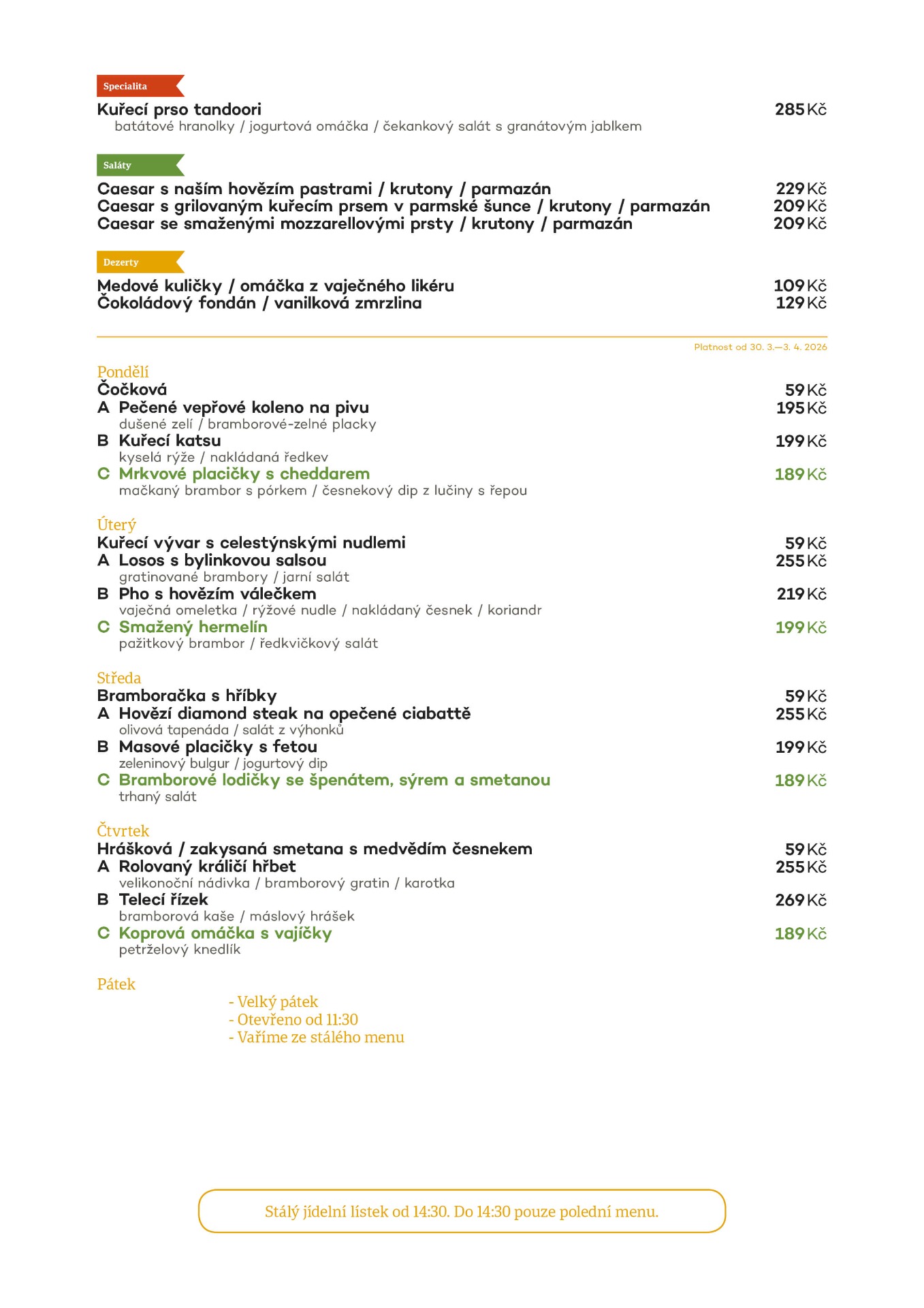 Polední menu 30.3. - 3.4.