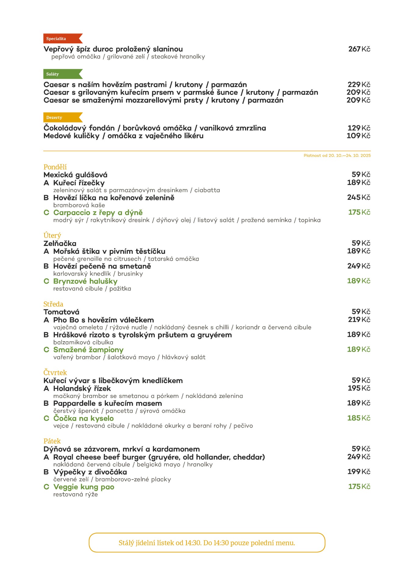 Polední menu Po-Pá (kromě svátků) 10.30 - 14.30 hod.